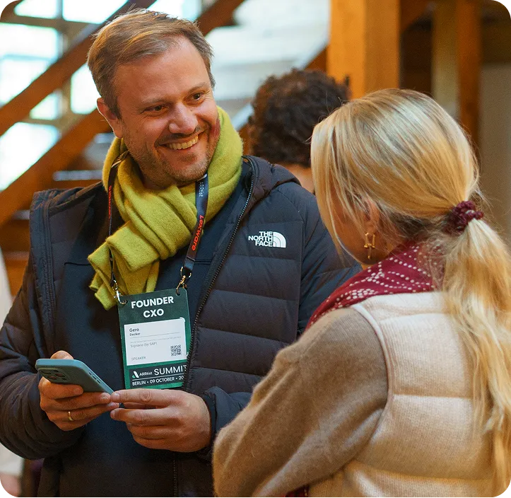 Access to 1:1 networking area. Access to attendee list and match-making app incl. all attending founders, CxOs and investors, two weeks prior to the event